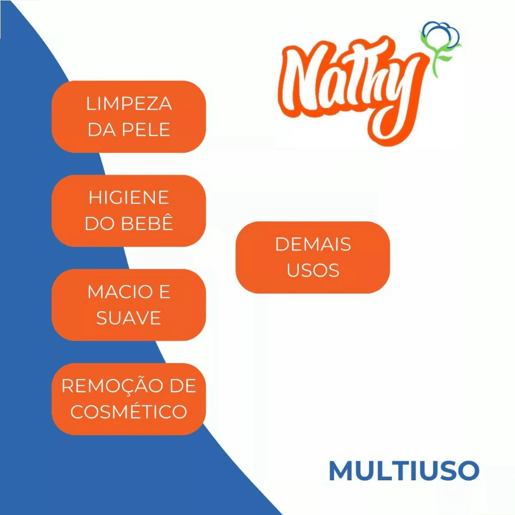 O modelo Algodão Quadradinho é elaborado com fibras 100% algodão, alvejado e isento de produtos químicos tais como: alvejante óptico, corantes corretivos e quaisquer outros que possa agredir a pele. O Algodão Nathy Quadradinho possui excelente formato com tamanho ideal para uso. Próprio para remoção de maquiagem, esmalte e cuidados diário com o bebê.