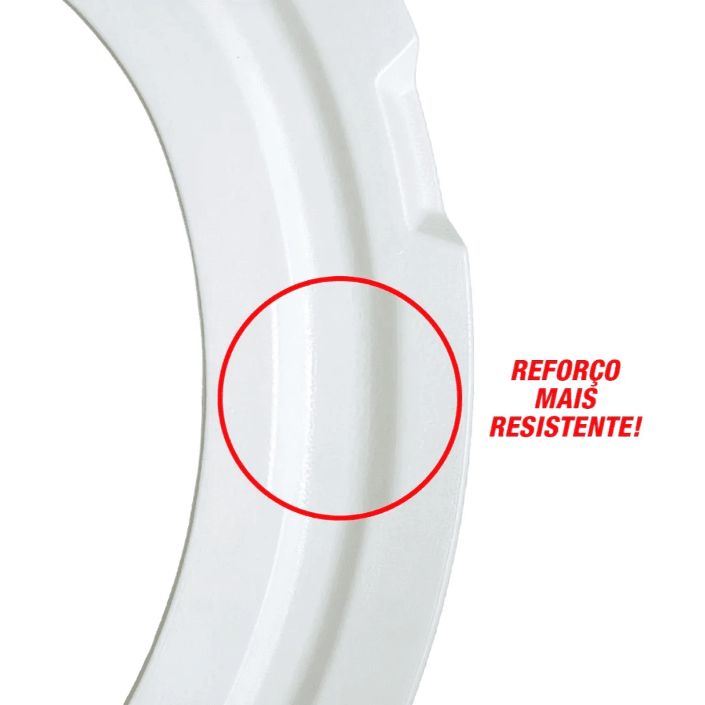 Possui reforço mecânico na parte inferior do assento, ocasionando uma maior resistência e mais segurança.