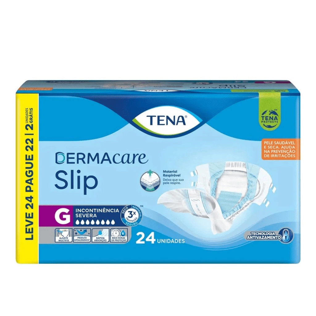 Tena Dermacare Slip - Pacote com 24 Unidades - Fralda Geriátrica Tradicional