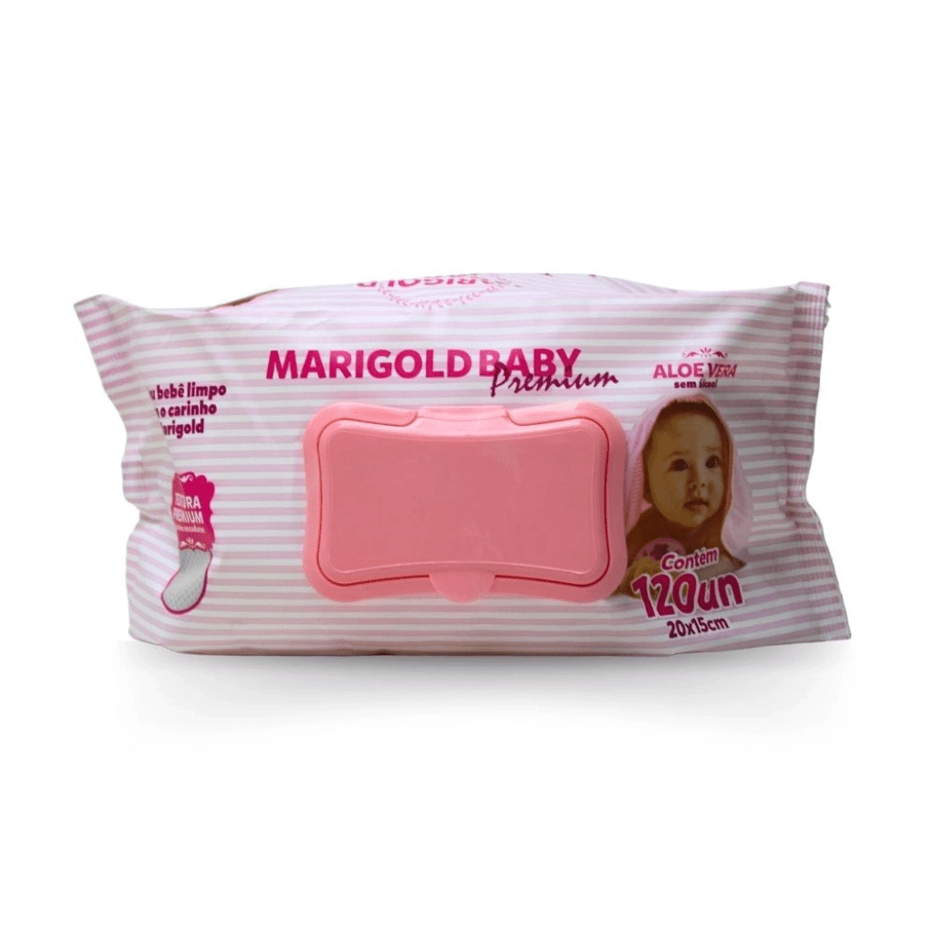 Toalhas Umedecidas Marigold Baby Premium Rosa com 120 unidades - 20cm x 15cm
