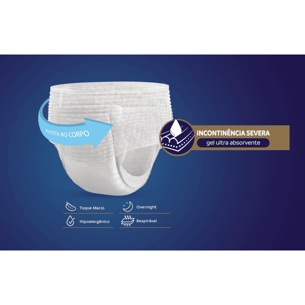 As Novas Fraldas WELLNESS PANTS proporcionam um toque macio e são confeccionadas com materiais respiráveis, garantindo conforto e proteção para a pele ao longo do dia. Combinando funcionalidade e discrição, elas permitem que os usuários mantenham sua rotina com confiança e liberdade.